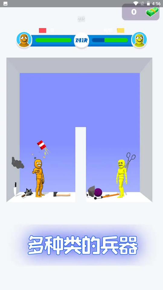 【不同武器】每个火柴人对爆炸和冲击都有不同的反应。当武器击中时就会嵌入火柴人的体内。