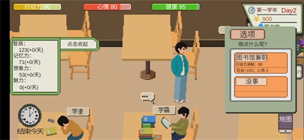 15、在图书馆可以找学霸请教,获得智力提升,当然没钱了也可以在图书馆打工兼职来获得现金。