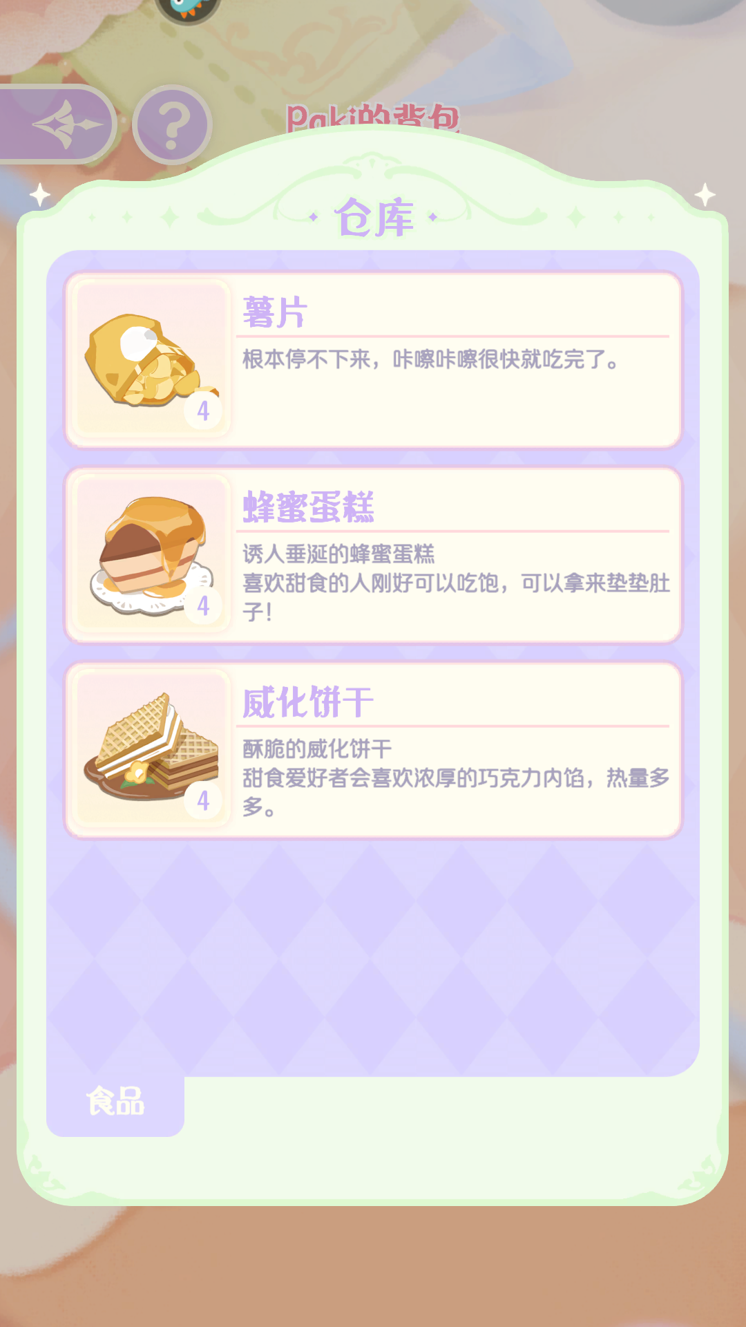 paki基本带什么都会出去,薯片和南瓜派出去的最多,饼干蛋挞蛋糕什么的也没问题,水没怎么给过,都紧着uno用了。