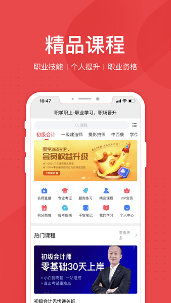 这不仅是一个app,更是多形式学习、充满优质课程的移动考证"学堂"。