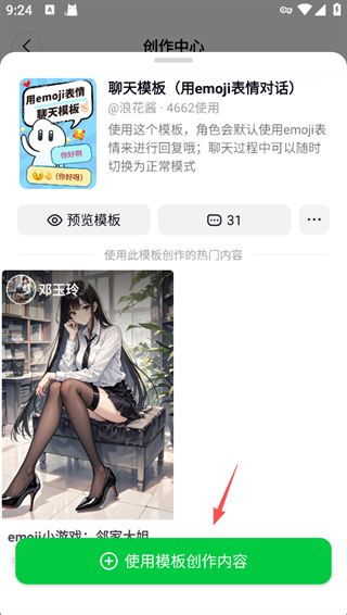 3、点击【使用模板创作内容】