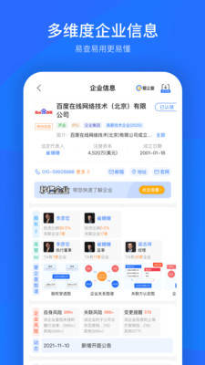 1、多个维度进行企业分析,为用户提供更多便捷,多种查询服务都是免费使用的,带你了解企业信息。