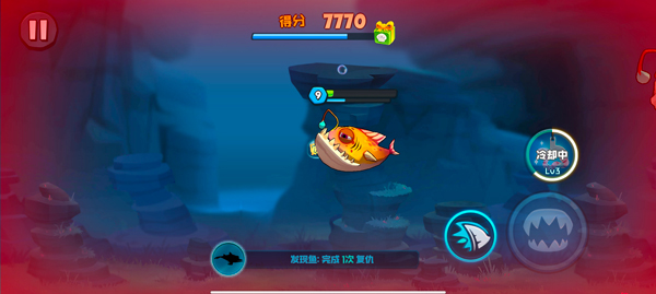 2、不断的对小鱼进行移动,让它能够吃到更多的食物,快速的变大起来,从而可以吃掉那些原来比自己大的生物。
