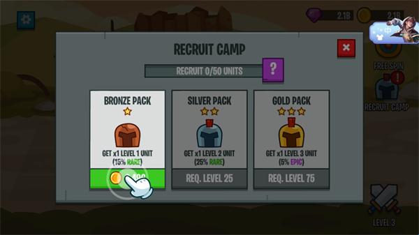 4.随着关卡的增加,敌人会越来越强,你需要通过招募来获得更多的士兵。