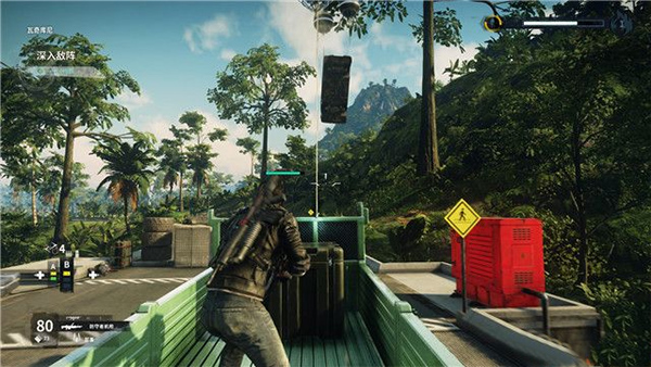 向高处使用抓钩+降落伞,会让里科攀登的越来越高。