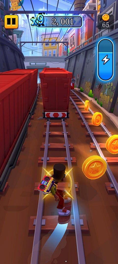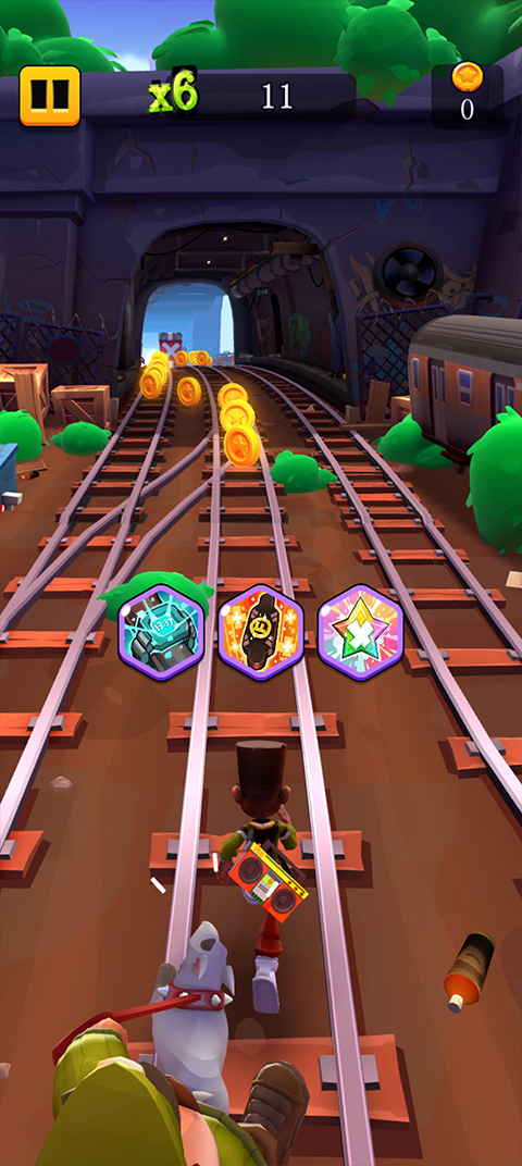 2、可以在店铺购买技能和工具。玩家从游戏收集大量的金币。这些金币可以在游戏店铺购买技能和工具。工具主要有加速度、磁铁和滑板。