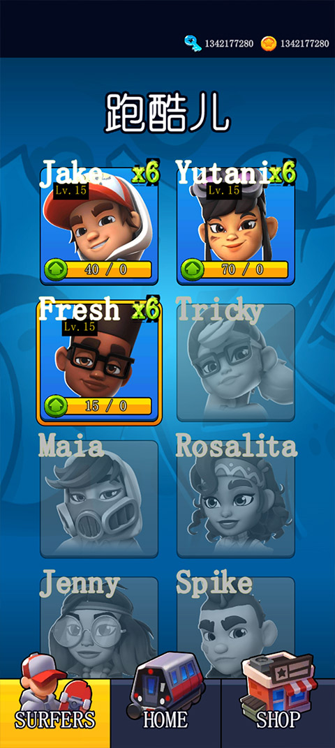 玩家控制角色躲避障碍的同时,还需要尽量的拾取沿途的金币,金币可以用来获取新的角色。