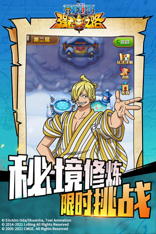 《航海王强者之路》是一款高度还原《航海王》动漫的手游。它有着海量经典角色,路飞、索隆等任你招募培养。丰富玩法超吸睛,PVP竞技激情对战,策略排兵斗智斗勇;还有特色冒险副本,带你重温动漫经典剧情。游戏画面精美,完美再现动漫场景。并且不断更新内容,持续带来新体验。快来开启属于你的航海冒险,和伙伴们一起称霸大海!