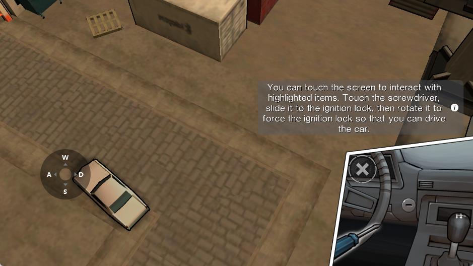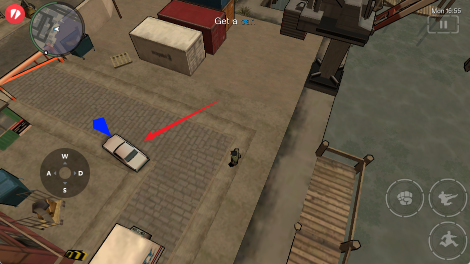 初来乍到首先要掌握偷车技巧,长按螺丝刀图标移至钥匙孔,按提示旋转发动引擎。B键加速,Y键倒车,X键上下车。驱车前往目的地后按X下车走到标记点触发剧情。