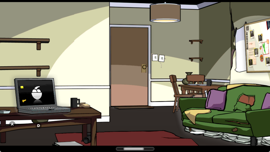 5、剧情后前往住所,查看笔记本里的两封信件,右侧墙壁可查询任务,沙发可存档。出门后地图出现K标记,前往该地点。