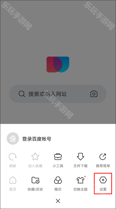 2、在菜单栏内点击【设置】,在【设置】页面点击搜索插件