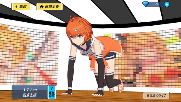 3、按照游戏中的体验完成非常多的健身要求,玩家就可以获得美少女教练的鼓励。