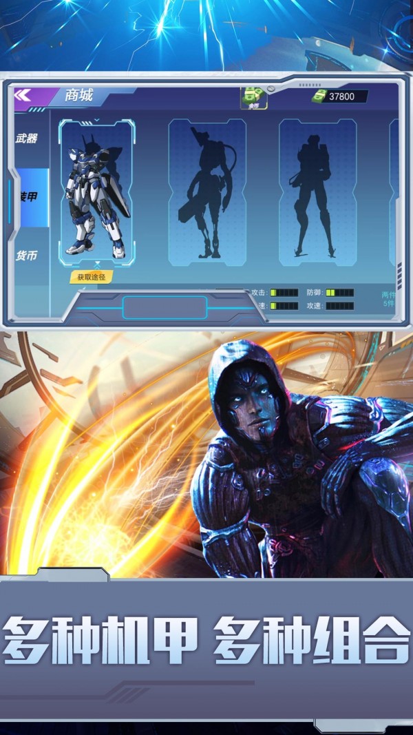 2.收集各种炫酷机甲套装和武器,特效逼真,战斗场景华丽刺激;