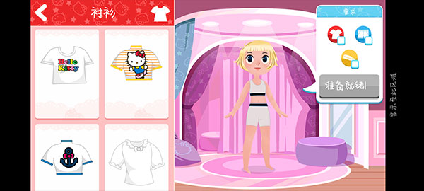 2、玩家将来到凯蒂猫的服装店铺,点击“!”接待第一位顾客。