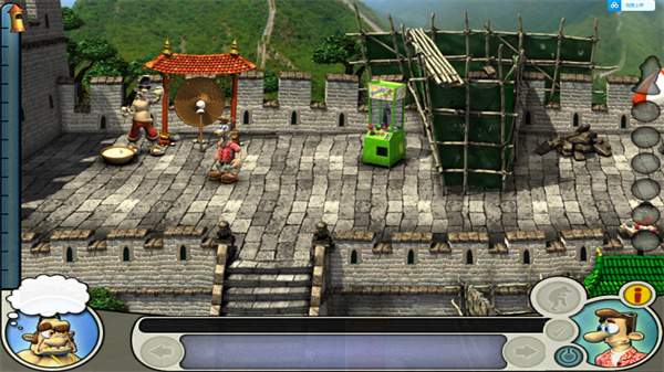 这关比较简单,先按提示拿热水袋,顺便拿右边箱子里的橡皮筋,然后上去按提示放热水袋,躲到烟囱里,等老头被他母亲打PP后,到左上,捡起玩具兔和有虱子的毛巾,然后在左上工具箱拿万能胶,等老头离开左下后,到左下,对楼梯旁的标枪使用橡皮筋,把玩具兔放到架子旁边的玩具箱上,然后到右下,使用有虱子的毛巾,然后老头离开右上后就马上上去,对放爆竹的箱子使用万能胶,然后马上下去或者躲到烟囱里,收工。