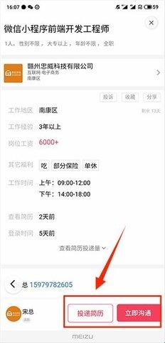 2、挑选后,查看职位详情,并可点击私聊进行更多了解。