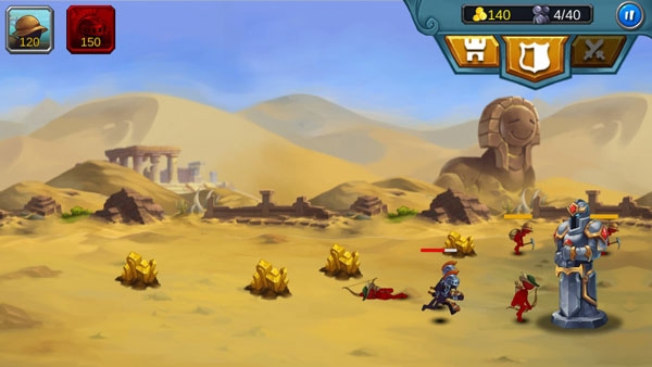 待玩家的战争矿产收集达到一定程度,便可开始训练您的战争士兵了,士兵的训练是需要消耗一定的金钱才能产生,训练好士兵之后,点击下图中的位置图标,便可挥舞你的火柴人军团去进攻敌人的营地。
