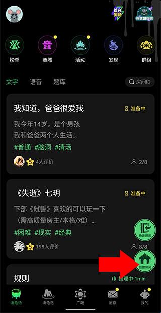 1、下载并进入海龟汤,点击右下角的创建房间。