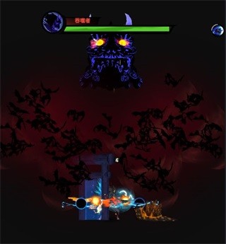 技能4:万蝠弯刀:吞噬者飞向高空,从体内释放出黑暗蝙蝠,对全屏造成AOE伤害。