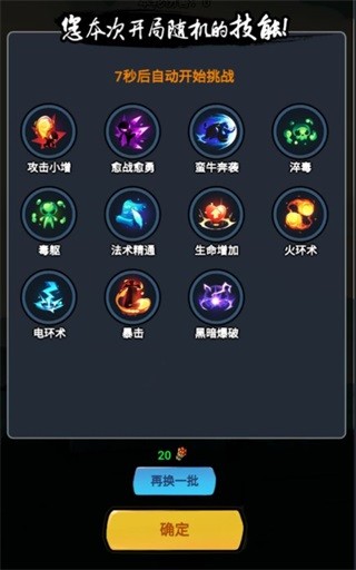 3.每次准备激战魔王之前会出现随机技能,若不合你的口味可以消耗火柴再换一批哦~