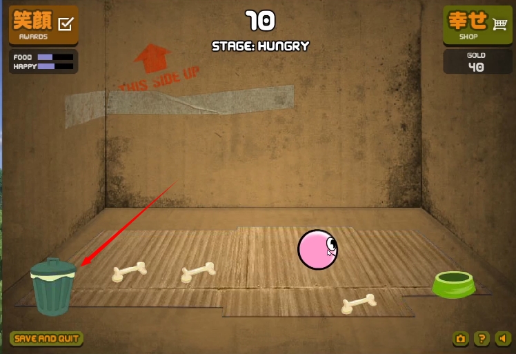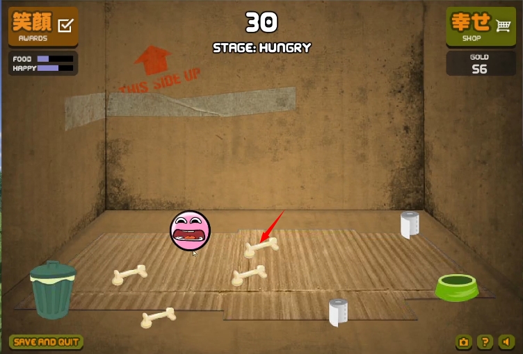 3、使用骨头来喂食小球,让它的心情保持正常