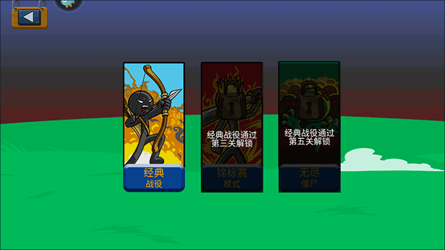 2、在这里玩家就可以选择自己想玩的具体游戏形式了,这里选择的是最左边的火柴人战争遗产;