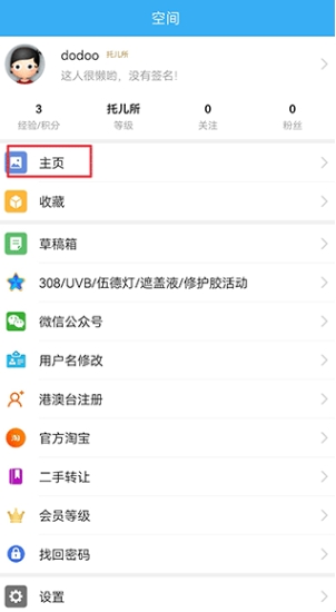 1、打开白白手拉手软件,在我的界面中,点击主页