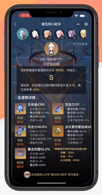 1、随时随地的查询各种圣遗物评分和强化模拟器。