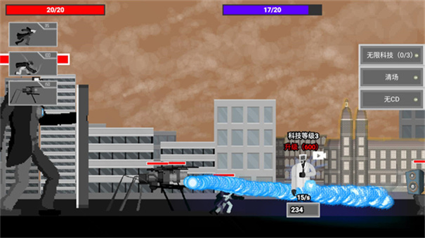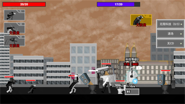 3、点击左上角可派出我方监控人,派出一个监控人后会有一定的冷却时间,右下角代表能量,需要能量你才能不断派出监控人,必要时可对能量进行升级。