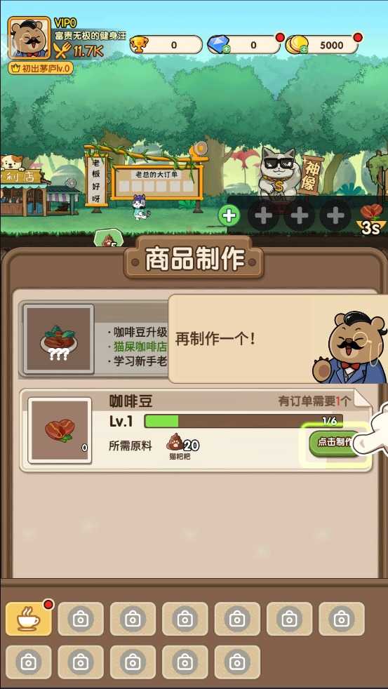 2.根据新手引导来制作咖啡进行售卖。