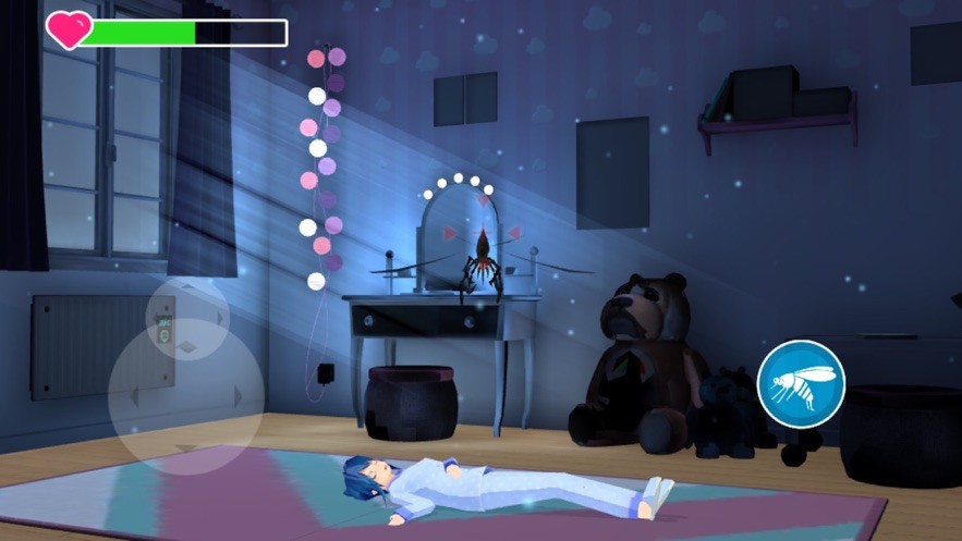 2、当我们完成其他的三个任务时,等待小姐姐再次入睡,来到房间右侧窗户的右下角靠梳妆台的窗户处,找到空调的开关;
