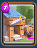 哥布林小屋是最稳定的产兵建筑,比骷髅墓碑输出能力强,比野蛮人小屋风险小,也是房子流的核心建筑,产兵速度合理,总价值收益很高,同时哥布林投矛手陆空兼顾,也是非常全面的兵种,哥布林小屋往往能够赚到费用。官方也有说明建筑生产的兵种都比同级卡牌施放的兵种稍弱一些。