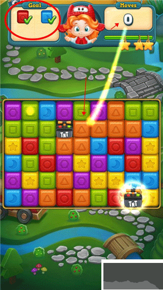 2、但是这款游戏不是达到分数进入下一个关卡,而是每个关卡要求在限定步数内消除规定的方块