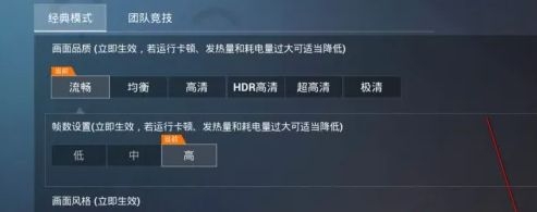 往下滑到画面设置,可以看到好几种画面选择,画面品质选择其中一种,选择【流畅】,帧数设置选择高帧数,玩游戏时不会太卡,画面风格随意选择其中一种。