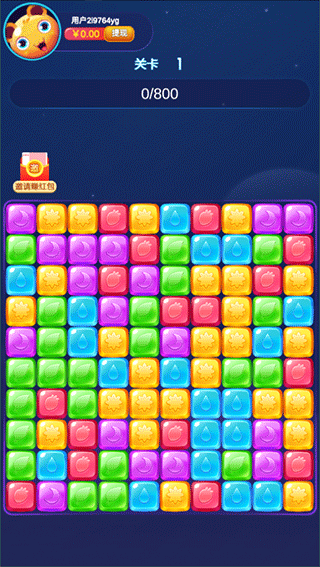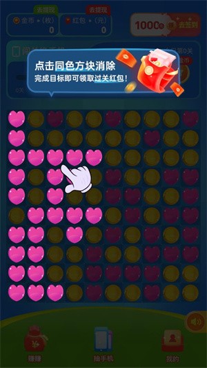 1、有丰富的红包可以领取,各种图案的方块可以消除。