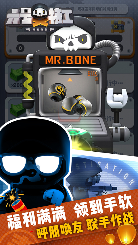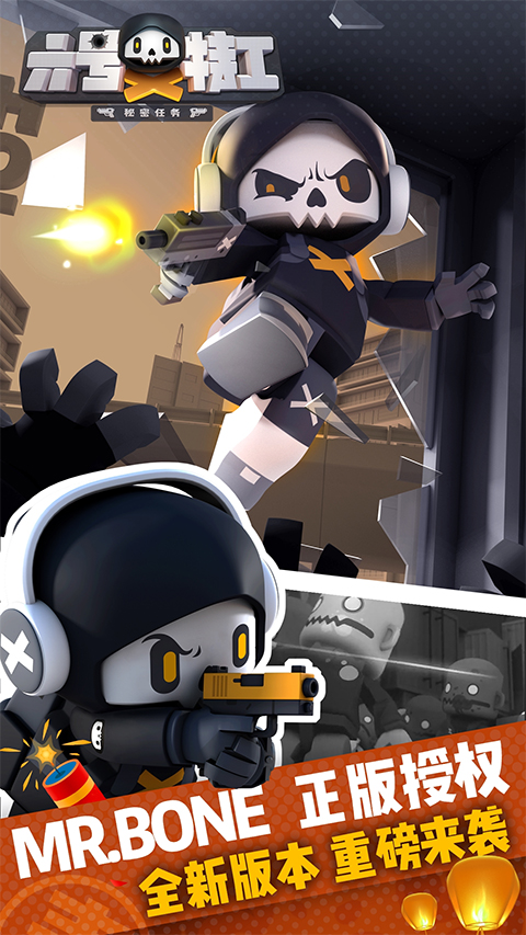 1、正版授权,原创团队合力打造,面临特工生涯的全新挑战,看MR.BONE如何耍帅全场。
