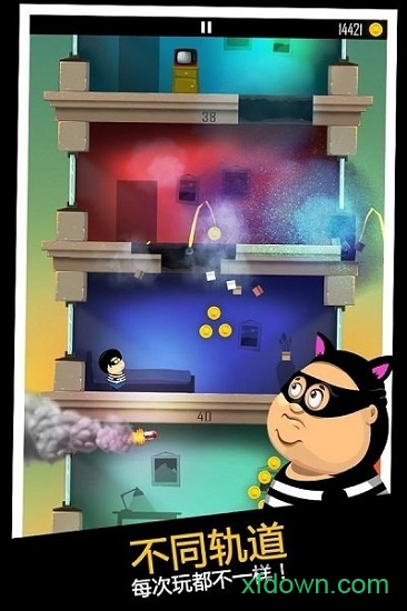4、通过滑屏来进行对游戏的操控,向上则是跳跃,向下则是吨位砸楼层,操作方法非常的简便