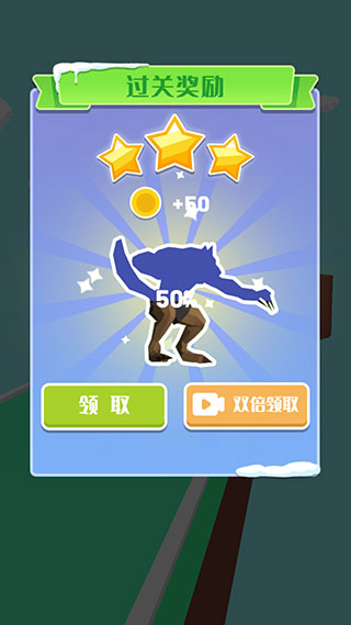 6、过关之后的奖励除了可以免看广告直接领取双倍金币之外,还会积累新恐龙的解锁进度。