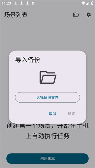 4、然后点击【导入备份文件】,将手机本地中的 .json 格式的脚本文件导入进来即可