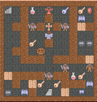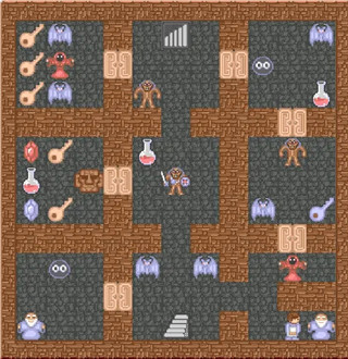 此外,关卡的每一关都有大量的药水和钥匙。某种颜色的钥匙只能打开相同颜色的门;