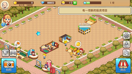 在游戏进行到一定等级的时候,在任务栏里即可找到投资的选项,然后花费一定数量的金币即可完成投资解锁新的顾客类型。但是并不是每个店都有投资的,玩家们千万不要以为这是游戏。当然,投资也会随着等级的提高商场的扩大而水涨船高,变得越来越贵,前期的话建议大家要投资,至于后期就要由你自己把握了。