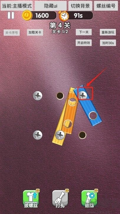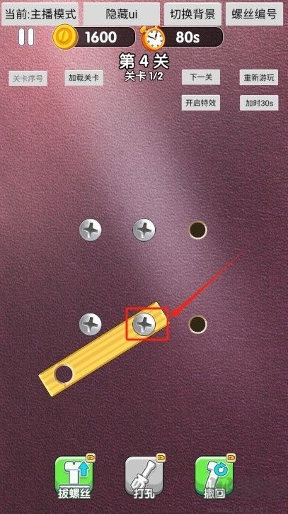 1、进入第四关之后点击左上角螺丝,将其精准移动到指定的空洞中;