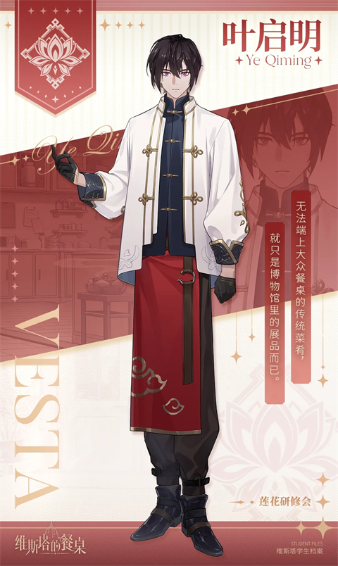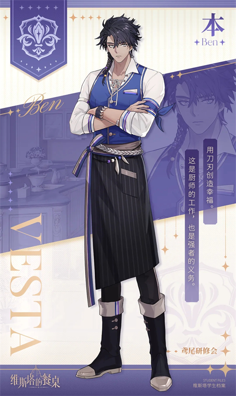 背景:今日黄昏你说什么呢,可怜而孤独的灵魂?伴随着零点的钟声响起,阴鸷的囚人从梦中苏醒,拿起画笔将黑夜蘸取。烹饪食材的色彩,描摹菜肴的芳香,刻刀在黑暗中流转,唤来了缪斯的倩影。然而白日一旦到来,他便会重新隐于幽冥,拒绝接近他人,也拒绝他人接近。你说友谊?异色的双瞳不屑地眯起。只有你这种小鬼,才会执着于这么虚假的东西。