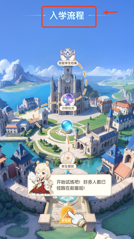 新手玩家需要完成入学流程,领取学生档案,成功入学