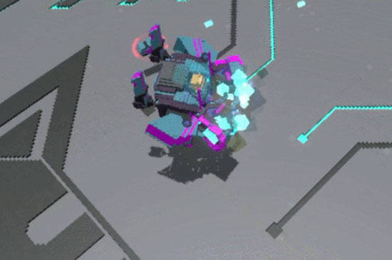 技能4:肩上的火炮发射出会追踪玩家路径的子弹,这个技能的躲避方式很简单,我们只需要拉开和子弹的距离即可。