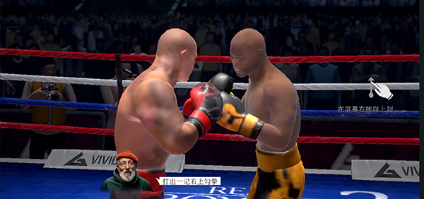 2在屏幕右侧区域,向上滑动手指能触发右上勾拳动作,向下滑动则可使出击打对手上半身的拳击招式。