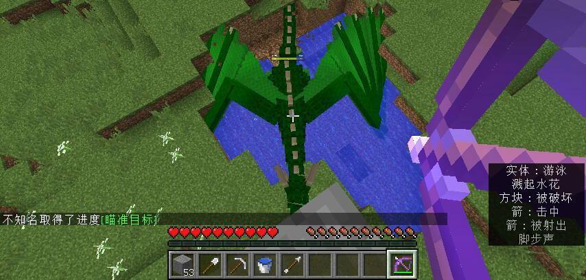 3、至少准备2组箭,水桶还是要的(方便快速下柱子,当然你要回收石块也可以,但是如果你本来就是石块太多的话就留在原地也没有任何问题)或者像下图一样,想办法把火龙吸引到水塘里面,然后弓箭伺候(火龙在水里如入泥潭)。