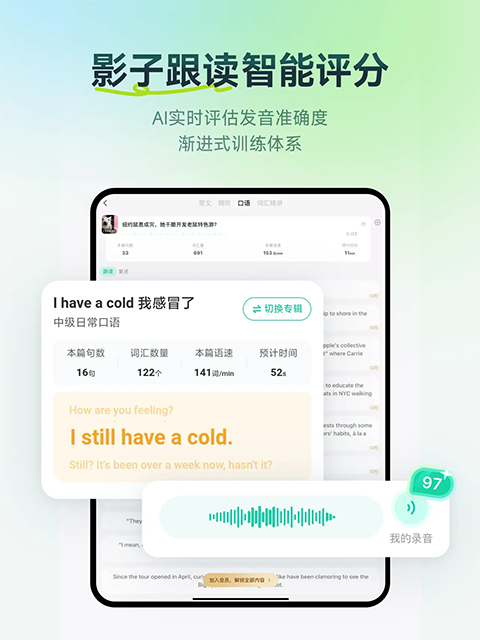 你在每篇文章的得分、重听次数,都会被我们记录下来,日积月累,体现你的进步。