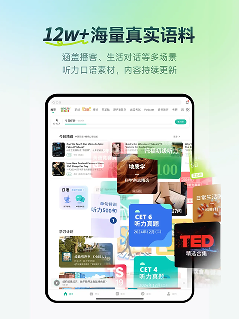 四六级、托福、雅思,我们精选了历年真题对你进行强化训练,即使只有一分钟也可以快速开始练习。