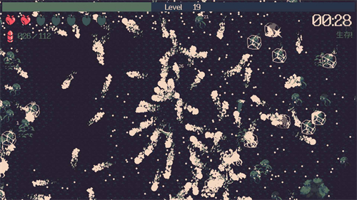 伤害不能说有,只能说是爆炸。一棵树的血量不知道多少,但他就是能打爆,点弹射别点穿透,攻击键一按下去就是清屏,然后子弹稍微大一点,最大的效果是这样